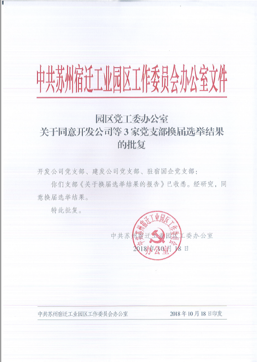 園區(qū)黨工委辦公室 關(guān)于同意開發(fā)公司等3家黨支部換屆選舉結(jié)果的批復(fù)