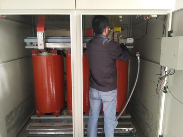 5月10日,市供電公司專業(yè)人員及物業(yè)管理部高低壓電工準(zhǔn)時(shí)到場,有序地對6臺變壓器及17面高壓進(jìn)線柜、29面低壓柜、電容補(bǔ)償柜等設(shè)備進(jìn)行了交流耐壓試驗(yàn)、直流耐壓試驗(yàn)、直流電阻試驗(yàn)、變比試驗(yàn)、回路電阻試驗(yàn)、開關(guān)測試試驗(yàn)、介質(zhì)損耗角試驗(yàn)、絕緣試驗(yàn)及接地電阻等試驗(yàn),并對柜內(nèi)所有接線端子、螺栓、儀器儀表、繼電器等部件進(jìn)行了清潔、檢測和調(diào)試。