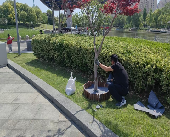 近日,建發(fā)公司不斷深化精細化管理,從細節(jié)入手創(chuàng)新思路,通過合理利用廢棄木樁,對公園內(nèi)苗木樹穴實施美化,打造公園新亮點。