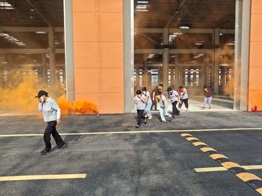 隨著警報響起,滅火組、疏散組、救護組、警戒組、通信組迅速響應(yīng),各司其職。在工作人員引導(dǎo)下,參與員工按照預(yù)定疏散路線快速有序撤離,僅用3分鐘便全部安全抵達安全疏散點。