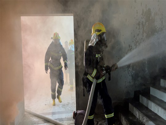 下午15點50分,科技物流園內(nèi)部突然起火,現(xiàn)場濃煙滾滾,相關工作人員立即采取自救措施,通知義務消防員有序組織人員疏散,消防官兵到場后,立即迅速組織對被困人員實施救援,及時堵截火勢、控制火情,經(jīng)過近30分鐘的滅火救援戰(zhàn)斗,大火被徹底撲滅,演練取得了圓滿成功。