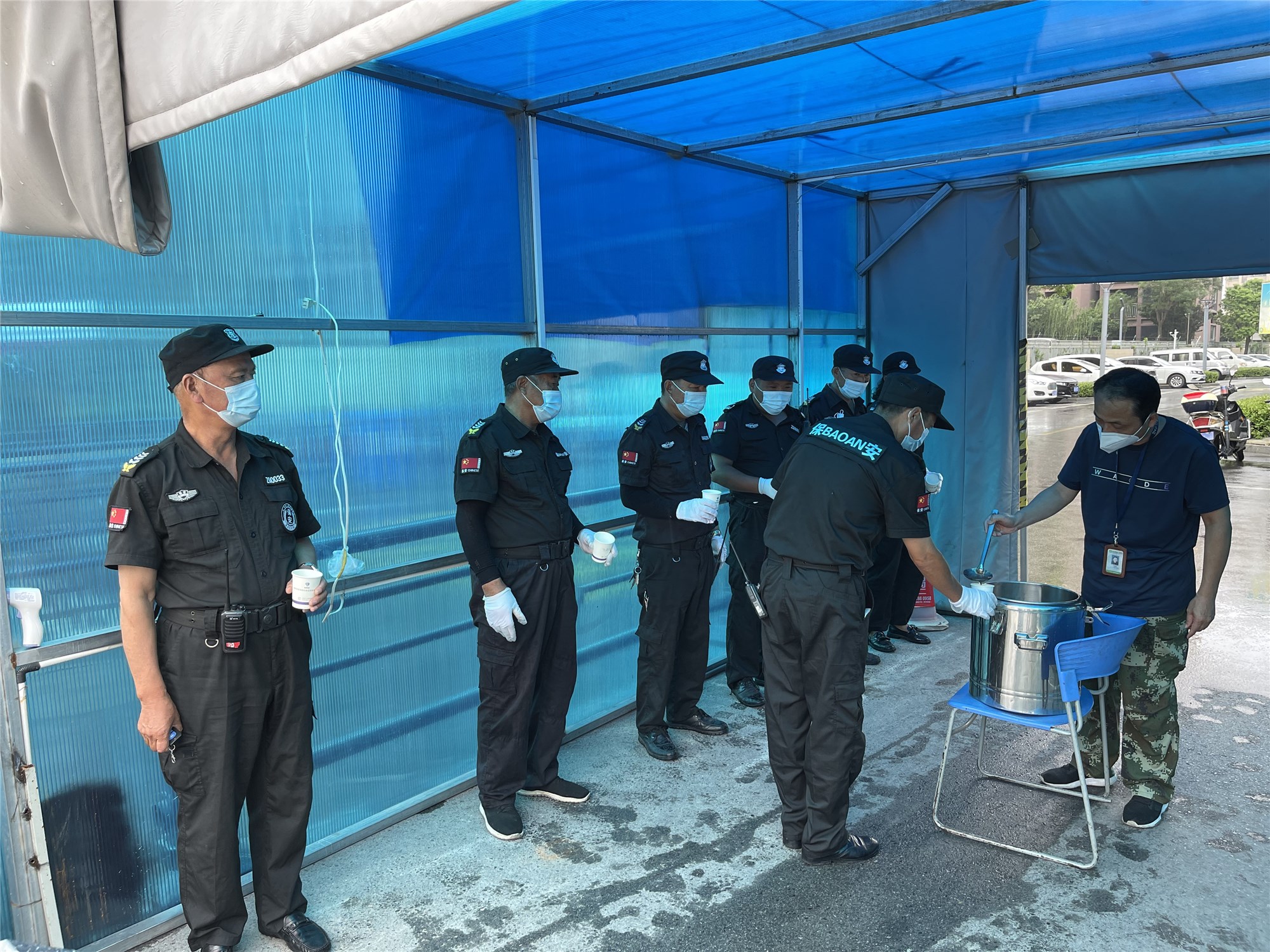“這是剛熬好的綠豆湯,大家盡快喝。”建發(fā)公司為園區(qū)公舍各個防疫值守點一線人員送去了綠豆湯。