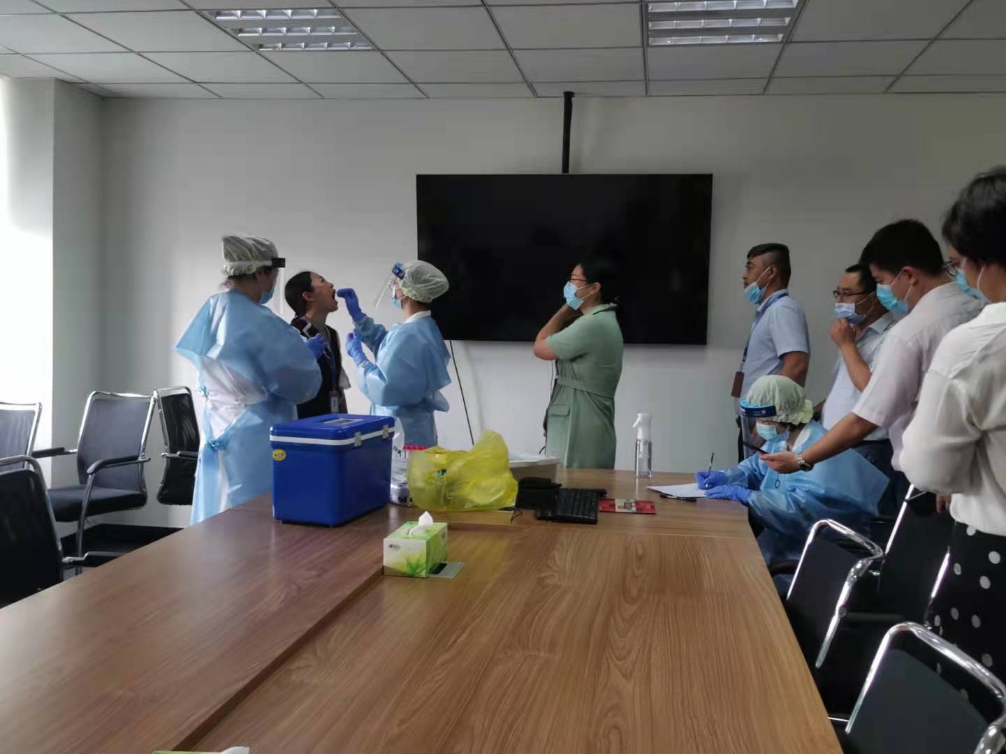 為保證各項(xiàng)工作順利推進(jìn),公司提前部署,邀請(qǐng)兒童醫(yī)院醫(yī)務(wù)工作者開展本次檢測(cè)。 檢測(cè)采樣現(xiàn)場(chǎng),醫(yī)務(wù)人員身著防護(hù)服,嚴(yán)格按照檢測(cè)采樣要求,控制每批次受檢人員數(shù)量,保持安全距離,避免人員聚集,保障檢測(cè)工作高效有序進(jìn)行。按照“愿檢盡檢”的原則,公司在崗員工進(jìn)行了咽拭子測(cè)試采樣。