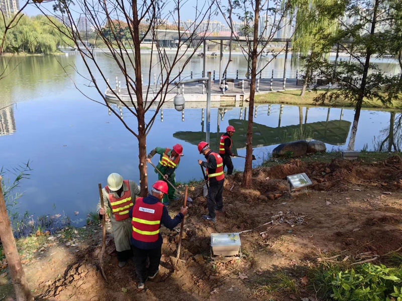 建發(fā)公司市政物業(yè)部根據今年氣候特點和苗木品種特性分階段性有計劃實施補植工作。提前做好死亡、缺失、長勢不良綠化苗木統(tǒng)計工作,同時針對補植量大的日本晚櫻綠化苗木開展專項考察工作;其次召開專題會議,要求施工單位根據苗木生活習性,堅持“先落葉、后常綠、先喬木、后灌木”的原則,結合今年氣候特點,合理安排補苗時間,確保入冬前全部補植到位;最后強調施工單位對新補植苗木澆灌“定根水、生根劑”和加強樹穴病毒消殺、支撐、防寒保暖等相關措施,提高苗木成活率。