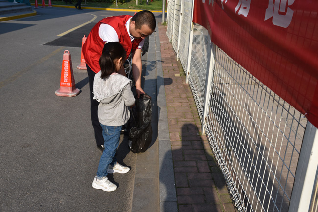 活動(dòng)中,全體黨員干部、志愿者走進(jìn)園區(qū)公舍開展志愿巡護(hù),分發(fā)綠色出行環(huán)保宣傳單,開展生活垃圾分類的宣傳,動(dòng)員引導(dǎo)園區(qū)居民著力踐行人與自然和諧共生和綠色發(fā)展理念,共同履行環(huán)保責(zé)任,形成集中宣傳效應(yīng)。同時(shí)沿途撿拾煙頭,每個(gè)人都充當(dāng)著城市環(huán)境的“顯微鏡”,“彎腰、蹲下、撿拾、站起”,一個(gè)個(gè)簡單而重復(fù)的動(dòng)作,撿起了“文明”、凈化了“心靈”、整潔了城市。