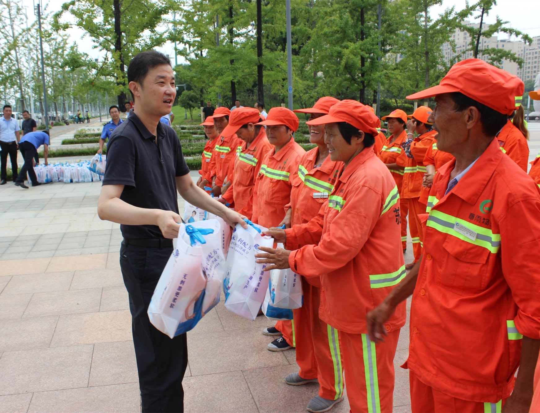 7月26日上午,園區(qū)黨工委委員、管委會(huì)副主任、規(guī)劃建設(shè)局局長(zhǎng)許紹杰帶隊(duì),親切慰問了奮戰(zhàn)在一線的城市維護(hù)作業(yè)人員,給他們送去了夏日里的問候和黨的關(guān)懷,感謝他們?yōu)閳@區(qū)的整潔、優(yōu)美城市環(huán)境所作出的貢獻(xiàn)。