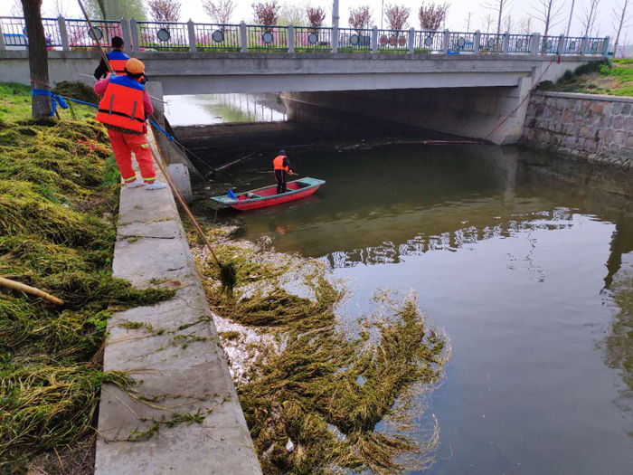 隨著天氣溫度逐漸升高,園區(qū)利民河、蔡莊大溝等河道水草大面積繁殖,為了營(yíng)造良好的水環(huán)境,扎實(shí)做好水面保潔工作,打造“水清、岸綠、河暢”的水生態(tài)環(huán)境,近期,建發(fā)公司組織環(huán)衛(wèi)隊(duì)伍集中開展河道水草打撈。