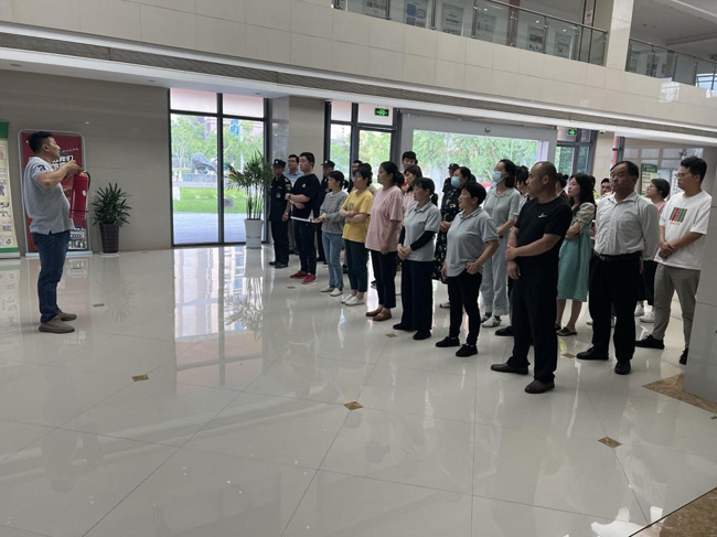 演練開始前,生產(chǎn)力中心企業(yè)代表、保安、保潔人員集中學習了火災預防、火場疏散逃生的基本常識以及如何撲救初起火災。