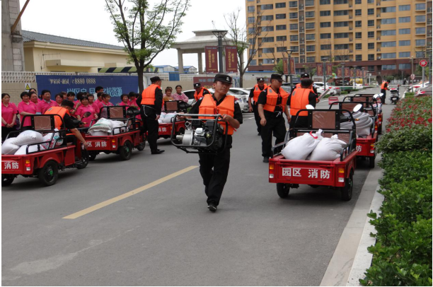 雨季即將來臨,為增強應對汛情的反應和處置能力,提升公司物業(yè)項目防汛應急搶險水平,6月7日下午,公司物業(yè)管理部在園區(qū)公舍西楚金地商城舉行了防汛搶險應急演練。演練共出動30名保安、10名消防官兵,8臺應急搶險電動三輪車,2臺消防車,準備了沙袋120袋。