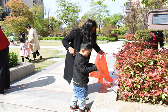 演示體驗結(jié)束后,清潔行動正式開始,志愿者、小區(qū)居民紛紛加入到志愿撿拾活動中,大家拿著夾子、塑料袋走向小區(qū)的各個角落,開始了各自的“探物之旅”,共同為自己的家園貢獻“潔凈”力量。