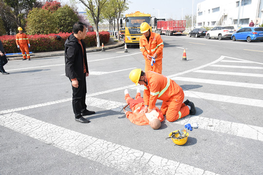此時,救援人員發(fā)現(xiàn)傷者呼吸已停止,緊急進行心肺復(fù)蘇,數(shù)分鐘后傷者逐漸恢復(fù)意識,隨后救護車到來將傷者送院就醫(yī)。至此,本次演練結(jié)束。