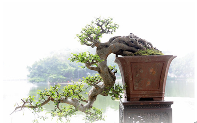 因地處五嶺之南面稱為嶺南派。嶺南派盆景形成過程中,受嶺南畫派的影響,創(chuàng)造了以“截干蓄枝”為主的獨特的折枝法構圖,形成“挺茂自然,飄逸豪放”特色。創(chuàng)作題材,或師法自然,或取于畫本,分別創(chuàng)作了秀茂雄奇大樹型、扶疏挺拔高聳型、野趣橫生天然型和矮干密葉疊翠型等具有明顯地方特色的樹木盆景;又利用華南地區(qū)所產(chǎn)的天然觀賞石材,依據(jù)“咫尺千里”、“小中見大”的畫理,創(chuàng)作出再現(xiàn)嶺南自然風貌為特色的山水盆景。